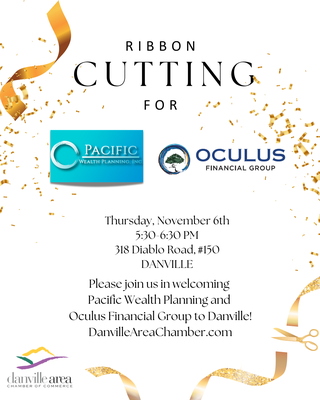 Please join the Danville Area Chamber in welcoming Pacific Wealth Planning and Oculus Financial Group to the Danville area by attending this ribbon cutting ceremony!
