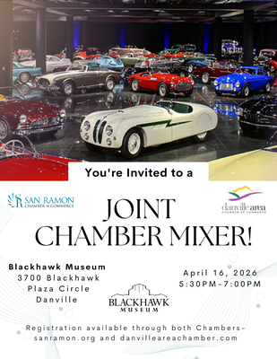 The Danville Area Chamber and the San Ramon Chamber of Commerce invite you to a special joint April Mixer at the renowned Blackhawk Museum—a hub where history, art, and culture converge across five unique galleries, including The Don Williams Automobile Gallery, The Spirit of the Old West, Art of Africa, World of Nature, and Into China.